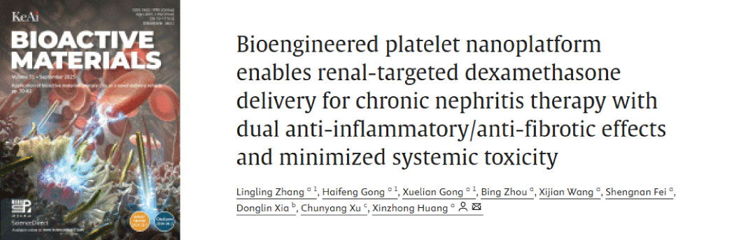摘要:Chronic nephritis management remains challenging due to the compromised therapeutic efficacy and severe systemic complications of conventional glucocorticoid therapy. Here, we developed a bioinspired platelet-mediated delivery system(LN-DEX@PLT) that leverages platelet tropism toward injured glomeruli for precision drug delivery. This system integrates lipid nanoemulsion encapsulation with platelet-mediated hitchhiking delivery to achieve three key functionalities:(1) enhanced renal targeting demonstrated by 2.2-fold higher glomerular accumulation compared to free dexamethasone via In vivo imaging, (2) effective mitigation of glucocorticoid-induced metabolic toxicity evidenced by reduced fasting plasma glucose(5.2 ± 0.3 vs 8.3 ± 0.7 mmol/L in free DEX), suppression of hepatic gluconeogenic enzymes(PEPCK expression decreased by 43 %, G-6 Pase by 51 %, both p < 0.001), and suppressed body weight (?23.1 % versus free DEX group), and(3) dual-pathway therapeutic effects through IL-6/TNF-α suppression and p53-p21Cip1-mediated senescence delay. In Adriamycin-based chronic nephritis models, LN-DEX@PLT demonstrated superior renal protection with 81 % reduction in proteinuria (vs 33 % for free DEX). In LPS-induced and Adriamycin-based chronic nephritis models, LN-DEX@PLT demonstrated suppression of renal inflammation markers(IL-6 expression decreased to 68 %, TNF-α to 51 %) and macrophage infiltration (F4/80+ cells decreased 5.3-fold). This platelet-biohybrid system provides a clinically translatable paradigm for precision glucocorticoid therapy with reduced dosing frequency.