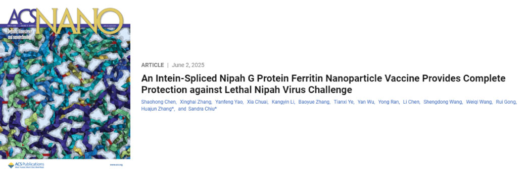 摘要:Nipah virus(NiV) is a serious hazard to human health since it can cause severe respiratory infections and viral encephalitis with a high fatality rate. Given the lack of a licensed NiV vaccine, there is an urgent need to develop one to protect public health. Previously, we developed NiV G protein nanoparticle vaccines by loading G protein onto ferritin nanoparticles(FeNP) via SpyCatcher/SpyTag technology, resulting in nanoparticles with three layers(FeNP-SC/ST-Ghead), including the inner core of ferritin(20 kDa), the intermediate layer of covalently linked SpyCatcher/SpyTag(11.2 kDa) and the outer layer of G protein. The intermediate layer is unnecessary in terms of immunization and occupies immune resources in the body. In this study, we used a split-intein to conjugate NiV Ghead onto FeNP, yielding FeNP-Ghead with two layers. In BALB/c mice, FeNP-Ghead could avoid immune response against SpyCatcher, elicit high levels of specific humoral immune responses for up to 217 days and long-lasting Th1-biased cellular immune responses. Furthermore, FeNP-Ghead showed potent protection efficacy in the hamster model, with immunization of 1 μg providing 100% protection against challenge with 1000 LD50 of NiV, and even as low as 0.2 μg being partially protective(83% survival). Since FeNP-Ghead has a lower protein content than FeNP-SC/ST-Ghead, it will occupy fewer immune resources in vivo, thereby reduce the potential for adverse immune side effect.