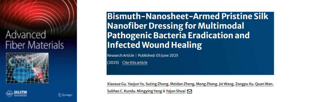 摘要:Traditional antibiotic-based therapies for treating infectious wounds often face challenges in balancing long-term biosafety, promoting wound healing, and effectivelyeradicating bacteria. Herein, we introduce an innovative "top-down" approach to fabricating one-dimensional(1D) pristine silk nanofibers(SNFs) by the gradual exfoliation of silk fibers, preserving their inherent semi-crystalline structure. These SNFs functioned as a robust template for the in situ growth of two-dimensional(2D) plum blossom-like bismuth nanosheets(BiNS), whose anisotropic morphology enhances bactericidal contact efficiency. The resulting BiNS-equipped SNFs(SNF@Bi) are assembled into membranes(SNFM@Bi) via vacuum filtration, showing superior biocompatibility, photothermal efficiency, and photodynamic activity. Furthermore, the acidic wound microenvironment or near-infrared(NIR) irradiation triggered the release of Bi3+, exhibiting nanoenzyme-mediated catalytic activity. This multimodal mechanism allows SNFM@Bi to eliminate over 99% of Staphylococcus aureus and 100% of Escherichia coli by disrupting biofilms, inducing lysis, and causing oxidative damage. In vivo evaluations demonstrated significant bacteria clearance, accelerated angiogenesis, and enhanced collagen deposition, contributing to rapid wound healing without systemic toxicity. Notably, SNFM@Bi detaches spontaneously after healing, avoiding chronic nanomaterial retention risks. This multifunctional antimicrobial platform offers a controllable, effective, and biocompatible therapeutic strategy for antimicrobial dressing design, with potential applications in biomedicine, environmental protection, and public health.