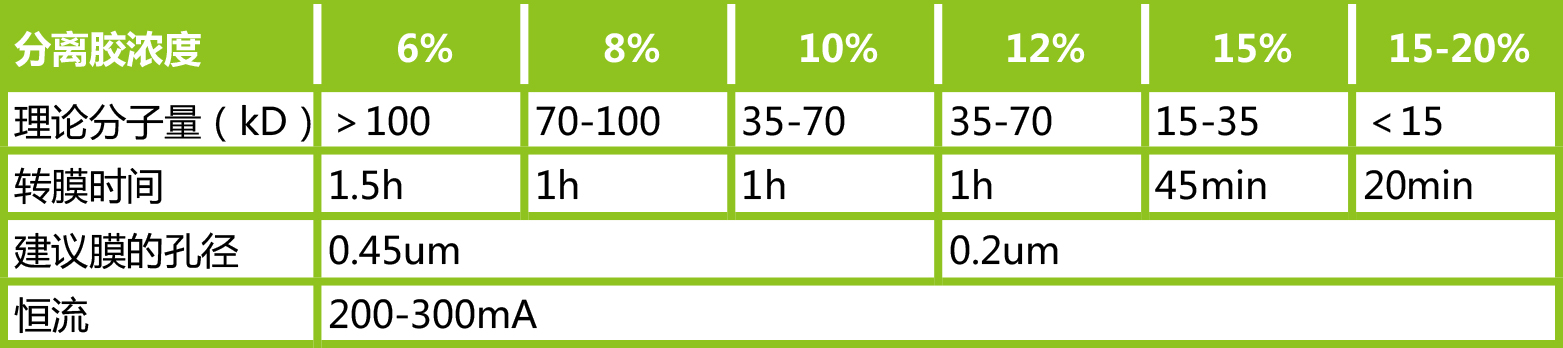 3. 200-300mA恒流轉膜,轉膜時間可參考下表。