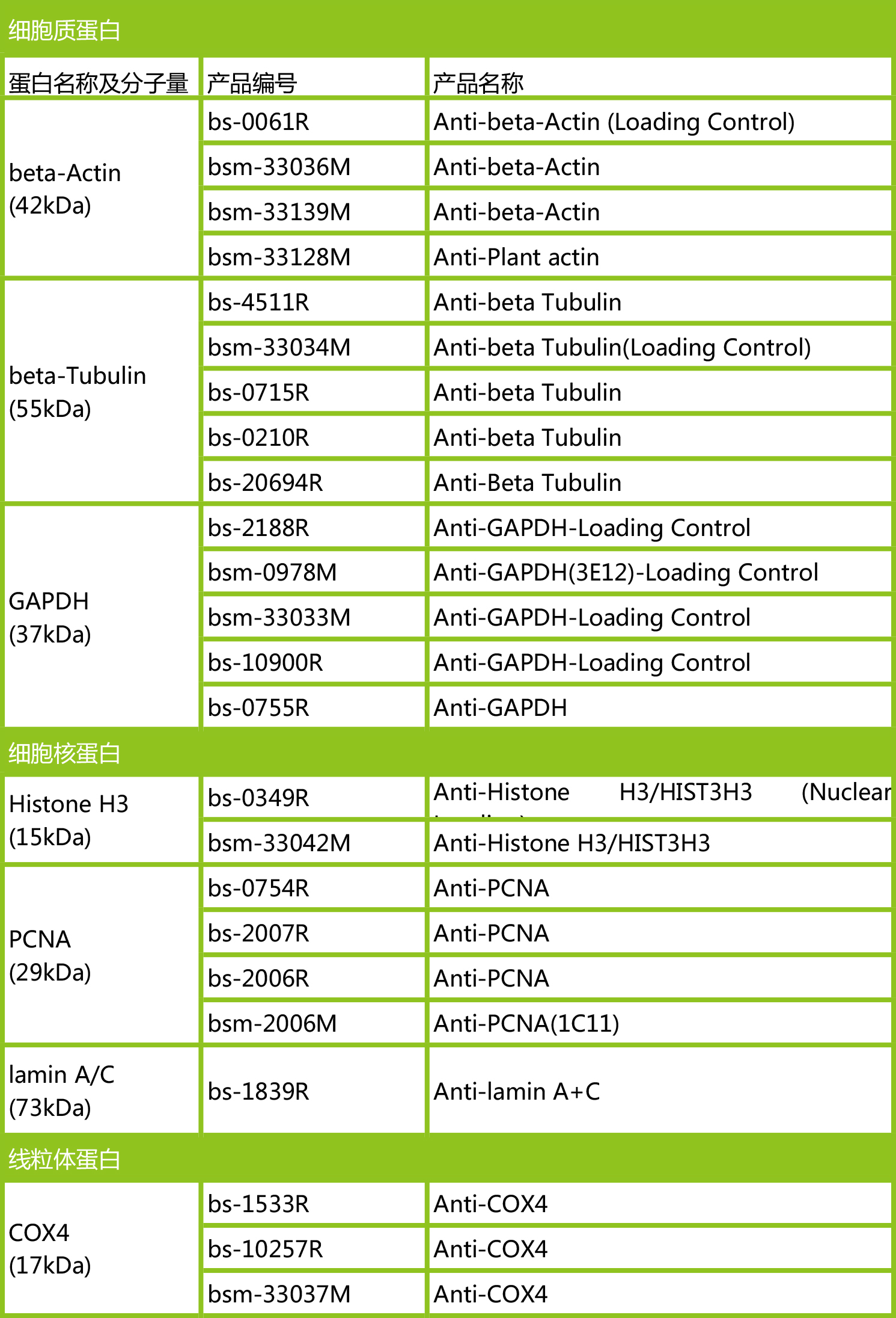 附表2:Bioss常見蛋白免疫印跡(WB)配套試劑