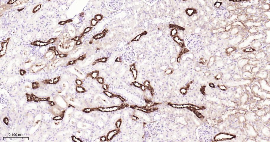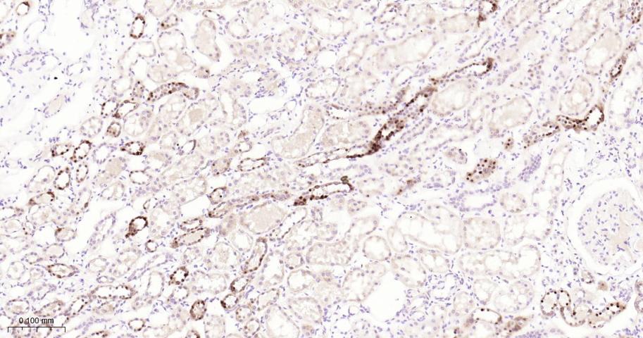 Paraformaldehyde-fixed, paraffin embedded Mouse Kidney; Antigen retrieval by boiling in sodium citrate buffer (pH6.0) for 15 min; The section was incubated with PPP1R1A Monoclonal Antibody, Unconjugated (bsm-61307R) at 1:200 overnight at 4°C, followed by conjugation to the bs-0295G-HRP and DAB (C-0010) staining.