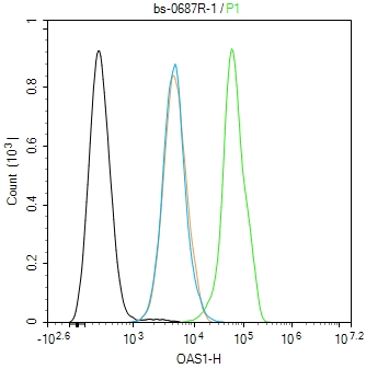Primary Antibody (green line): Rabbit Anti-OAS1 antibody (bs-0687R)