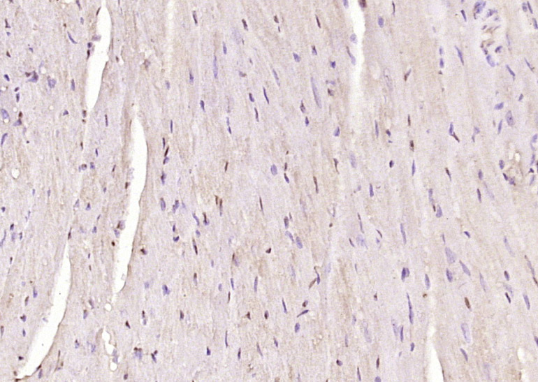 Paraformaldehyde-fixed, paraffin embedded (mouse heart tissue); Antigen retrieval by boiling in sodium citrate buffer (pH6.0) for 15min; Block endogenous peroxidase by 3% hydrogen peroxide for 20 minutes; Blocking buffer (normal goat serum) at 37°C for 30min; Antibody incubation with (PHD3) Polyclonal Antibody, Unconjugated (bs-0532R) at 1:400 overnight at 4°C, followed by operating according to SP Kit(Rabbit) (sp-0023) instructionsand DAB staining.