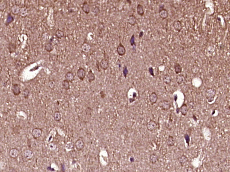 Paraformaldehyde-fixed, paraffin embedded (Mouse brain); Antigen retrieval by boiling in sodium citrate buffer (pH6.0) for 15min; Block endogenous peroxidase by 3% hydrogen peroxide for 20 minutes; Blocking buffer (normal goat serum) at 37°C for 30min; Antibody incubation with (Phospho-MYPT1 (Ser507)) Polyclonal Antibody, Unconjugated (bs-3285R) at 1:400 overnight at 4°C, followed by operating according to SP Kit(Rabbit) (sp-0023) instructionsand DAB staining.