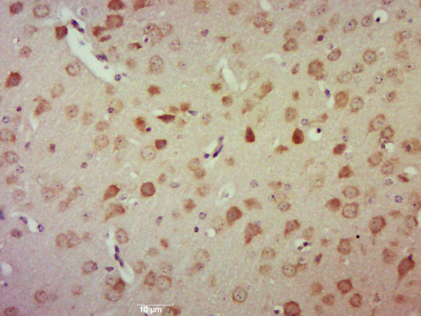 Paraformaldehyde-fixed, paraffin embedded (Mouse brain); Antigen retrieval by boiling in sodium citrate buffer (pH6.0) for 15min; Block endogenous peroxidase by 3% hydrogen peroxide for 20 minutes; Blocking buffer (normal goat serum) at 37°C for 30min; Antibody incubation with (FLASH) Polyclonal Antibody, Unconjugated (bs-3657R) at 1:500 overnight at 4°C, followed by a conjugated secondary (sp-0023) for 20 minutes and DAB staining.