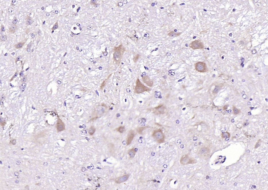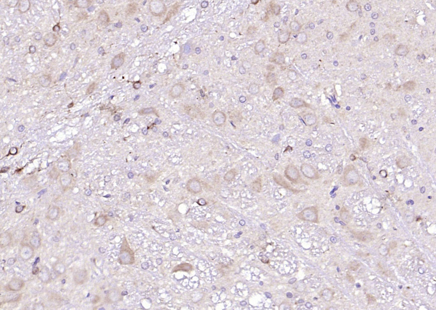 Paraformaldehyde-fixed, paraffin embedded (Rat cerebellum); Antigen retrieval by boiling in sodium citrate buffer (pH6.0) for 15min; Block endogenous peroxidase by 3% hydrogen peroxide for 20 minutes; Blocking buffer (normal goat serum) at 37°C for 30min; Antibody incubation with (NUAK2) Polyclonal Antibody, Unconjugated (bs-5811R) at 1:200 overnight at 4°C, followed by operating according to SP Kit(Rabbit) (sp-0023) instructionsand DAB staining.