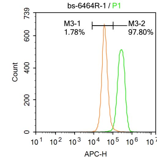 Primary Antibody (green line): Rabbit Anti-IRAK1 antibody (bs-6464R)