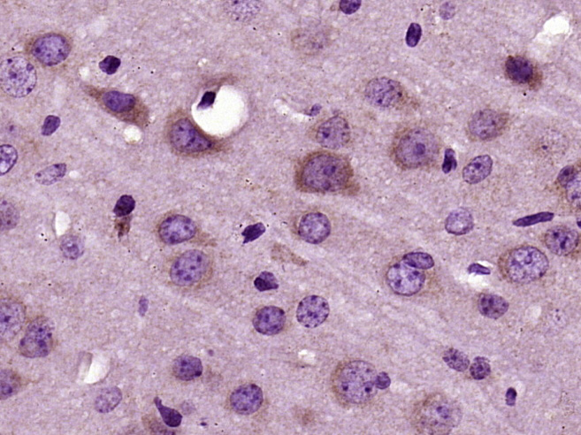 Paraformaldehyde-fixed, paraffin embedded (Rat brain); Antigen retrieval by boiling in sodium citrate buffer (pH6.0) for 15min; Block endogenous peroxidase by 3% hydrogen peroxide for 20 minutes; Blocking buffer (normal goat serum) at 37°C for 30min; Antibody incubation with (RNF128) Polyclonal Antibody, Unconjugated (bs-9251R) at 1:400 overnight at 4°C, followed by operating according to SP Kit(Rabbit) (sp-0023) instructionsand DAB staining.