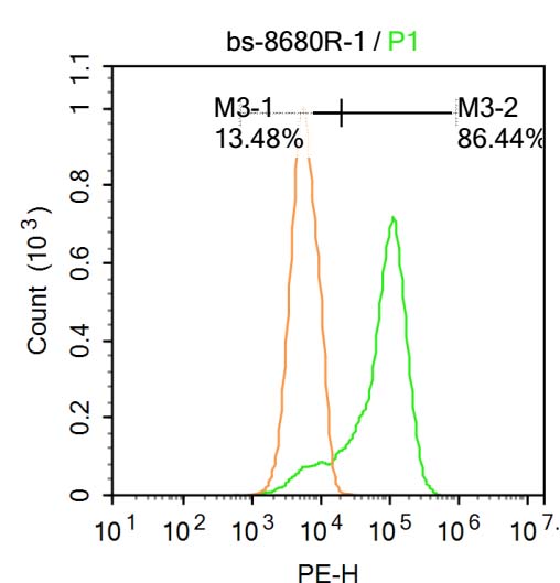 Primary Antibody (green line): Rabbit Anti-IRE1 antibody (bs-8680R )