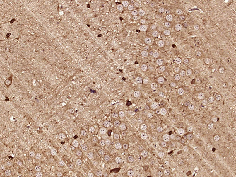 Paraformaldehyde-fixed, paraffin embedded (Mouse brain); Antigen retrieval by boiling in sodium citrate buffer (pH6.0) for 15min; Block endogenous peroxidase by 3% hydrogen peroxide for 20 minutes; Blocking buffer (normal goat serum) at 37°C for 30min; Antibody incubation with (ZAK) Polyclonal Antibody, Unconjugated (bs-13546R) at 1:400 overnight at 4°C, followed by operating according to SP Kit(Rabbit) (sp-0023) instructionsand DAB staining.