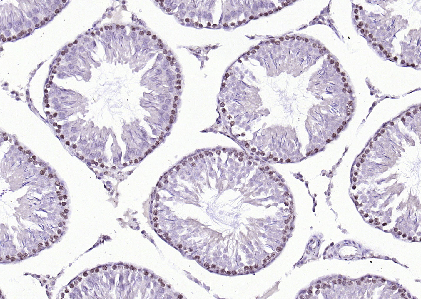 Paraformaldehyde-fixed, paraffin embedded (rat testis); Antigen retrieval by boiling in sodium citrate buffer (pH6.0) for 15min; Block endogenous peroxidase by 3% hydrogen peroxide for 20 minutes; Blocking buffer (normal goat serum) at 37°C for 30min; Antibody incubation with (SBNO1) Polyclonal Antibody, Unconjugated (bs-17251R) at 1:200 overnight at 4°C, followed by operating according to SP Kit(Rabbit) (sp-0023) instructionsand DAB staining.