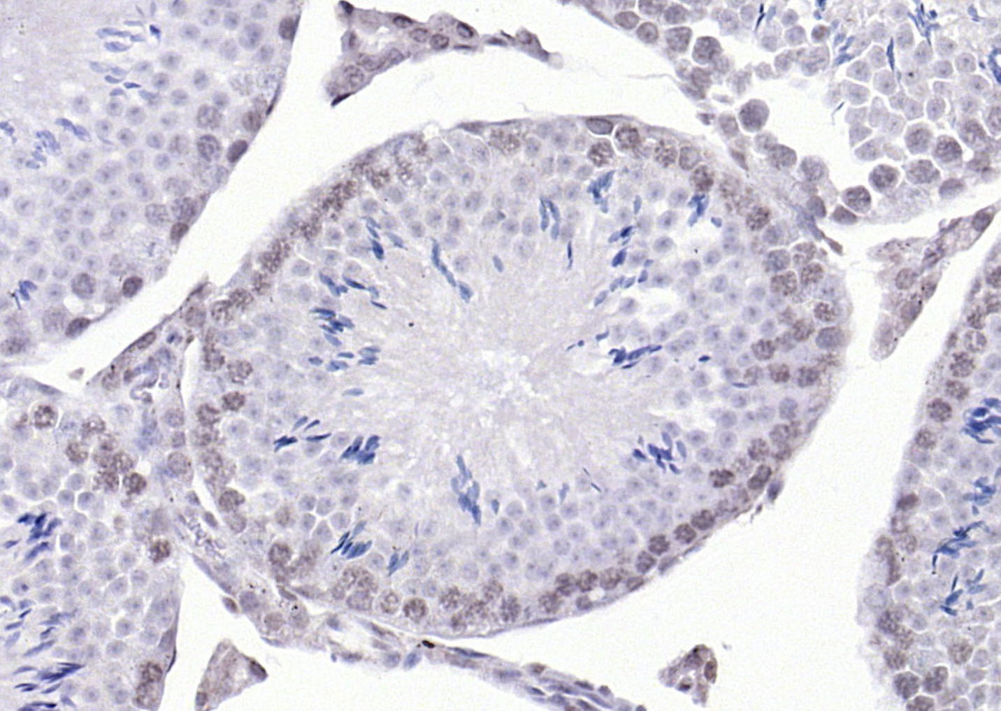 Paraformaldehyde-fixed, paraffin embedded (mouse testis); Antigen retrieval by boiling in sodium citrate buffer (pH6.0) for 15min; Block endogenous peroxidase by 3% hydrogen peroxide for 20 minutes; Blocking buffer (normal goat serum) at 37°C for 30min; Antibody incubation with (SBNO1) Polyclonal Antibody, Unconjugated (bs-17251R) at 1:200 overnight at 4°C, followed by operating according to SP Kit(Rabbit) (sp-0023) instructionsand DAB staining.