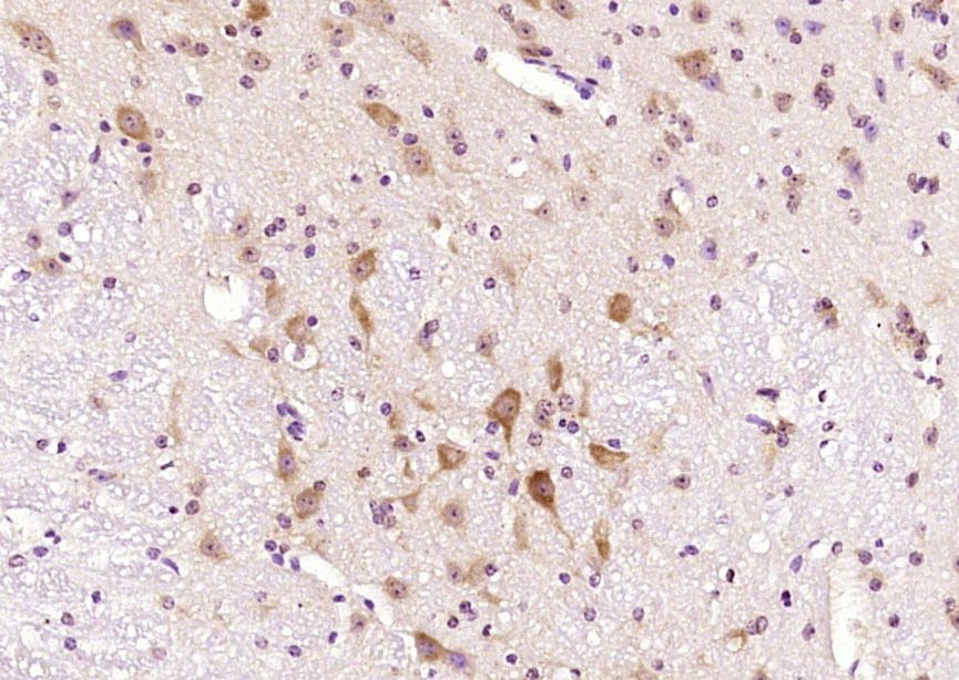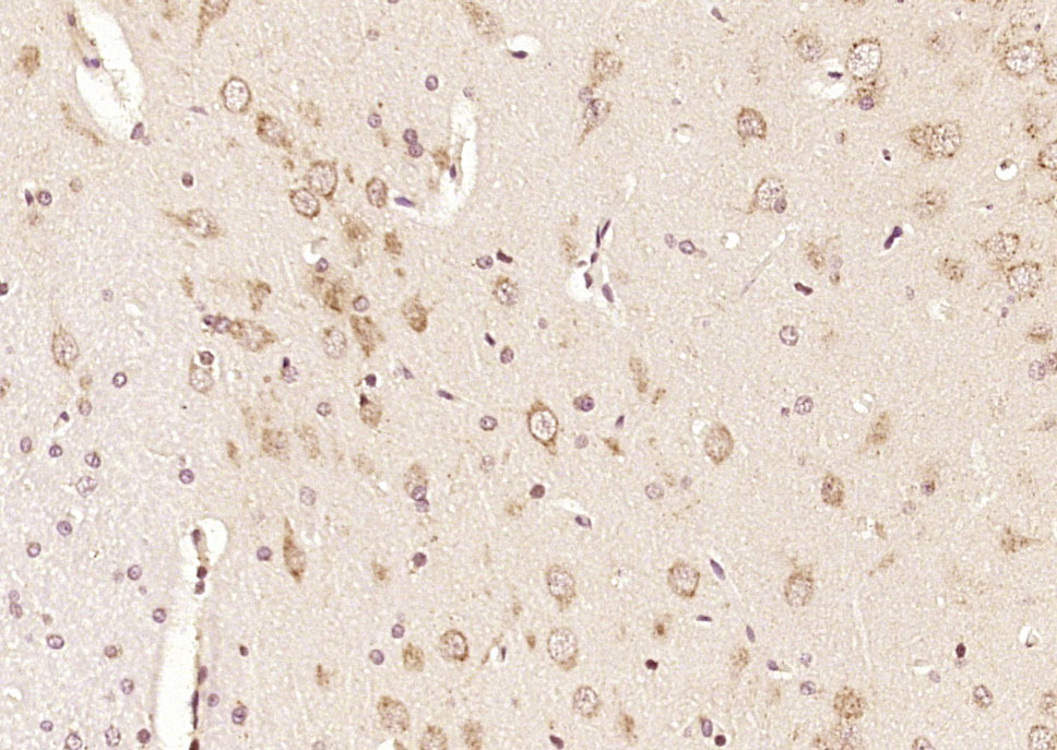 Paraformaldehyde-fixed, paraffin embedded (rat brain); Antigen retrieval by boiling in sodium citrate buffer (pH6.0) for 15min; Block endogenous peroxidase by 3% hydrogen peroxide for 20 minutes; Blocking buffer (normal goat serum) at 37°C for 30min; Antibody incubation with (CRF1) Polyclonal Antibody, Unconjugated (bs-20217R) at 1:200 overnight at 4°C, followed by operating according to SP Kit(Rabbit) (sp-0023) instructionsand DAB staining.