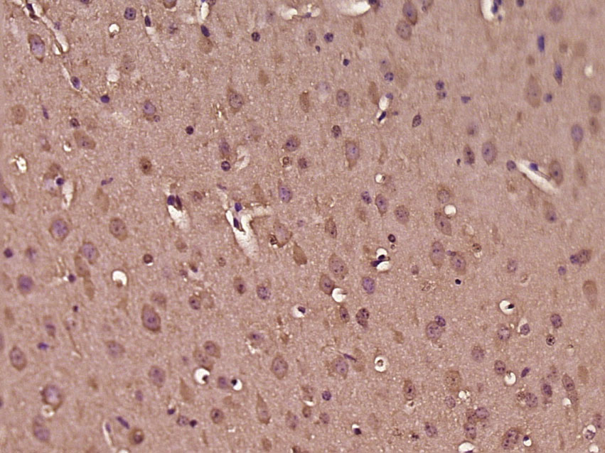 Paraformaldehyde-fixed, paraffin embedded (Mouse brain); Antigen retrieval by boiling in sodium citrate buffer (pH6.0) for 15min; Block endogenous peroxidase by 3% hydrogen peroxide for 20 minutes; Blocking buffer (normal goat serum) at 37°C for 30min; Antibody incubation with (PKIB) Polyclonal Antibody, Unconjugated (bs-12692R) at 1:500 overnight at 4°C, followed by a conjugated secondary (sp-0023) for 20 minutes and DAB staining.