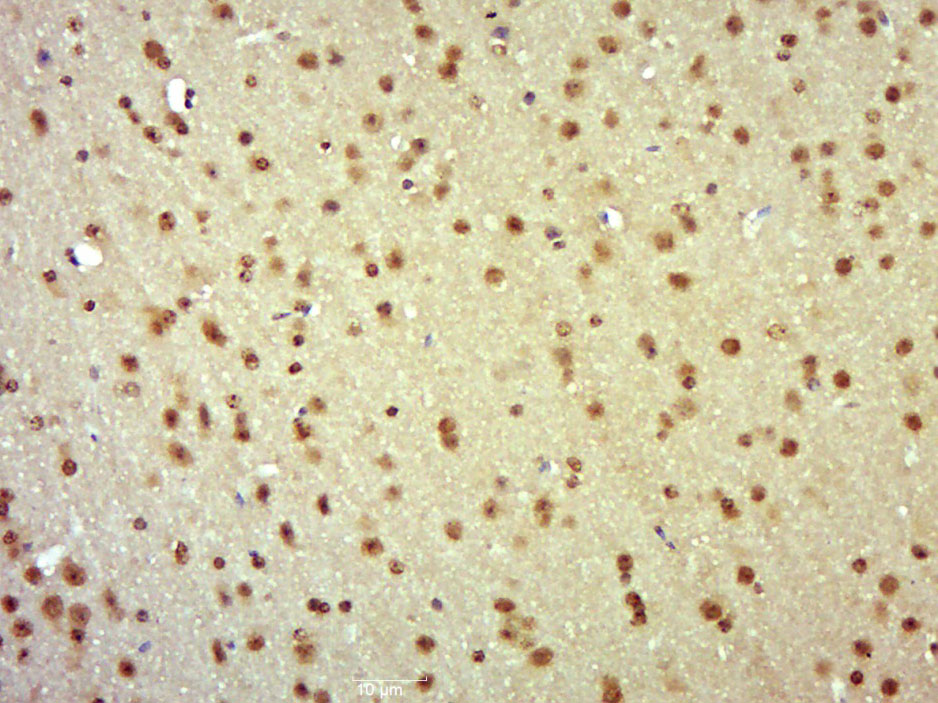 Paraformaldehyde-fixed, paraffin embedded (Mouse brain); Antigen retrieval by boiling in sodium citrate buffer (pH6.0) for 15min; Block endogenous peroxidase by 3% hydrogen peroxide for 20 minutes; Blocking buffer (normal goat serum) at 37°C for 30min; Antibody incubation with (PKN1) Polyclonal Antibody, Unconjugated (bs-7478R) at 1:500 overnight at 4°C, followed by a conjugated secondary (sp-0023) for 20 minutes and DAB staining.