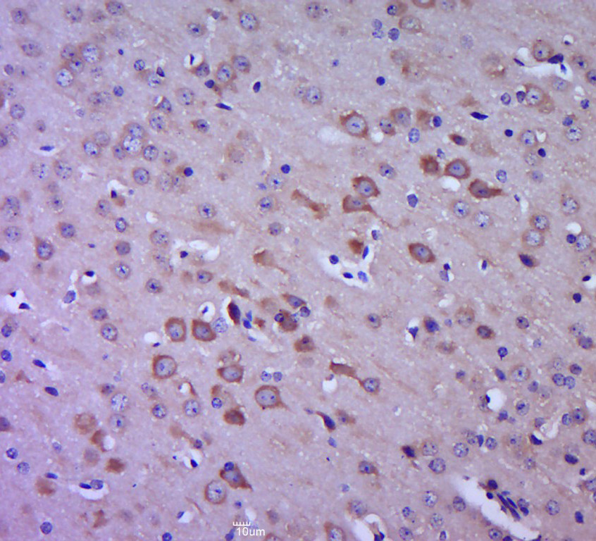 Paraformaldehyde-fixed, paraffin embedded (Rat brain); Antigen retrieval by boiling in sodium citrate buffer (pH6.0) for 15min; Block endogenous peroxidase by 3% hydrogen peroxide for 20 minutes; Blocking buffer (normal goat serum) at 37°C for 30min; Antibody incubation with (FAK) Polyclonal Antibody, Unconjugated (bs-20734R) at 1:400 overnight at 4°C, followed by operating according to SP Kit(Rabbit) (sp-0023) instructionsand DAB staining.