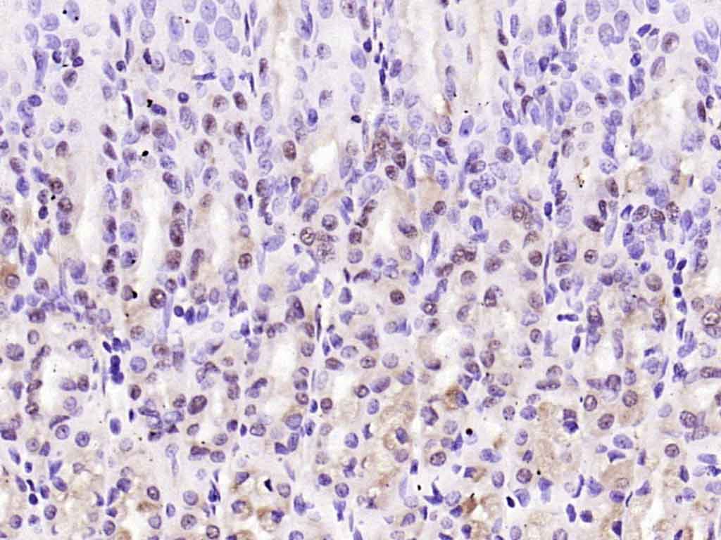 Paraformaldehyde-fixed, paraffin embedded (rat stomach); Antigen retrieval by boiling in sodium citrate buffer (pH6.0) for 15min; Block endogenous peroxidase by 3% hydrogen peroxide for 20 minutes; Blocking buffer (normal goat serum) at 37°C for 30min; Antibody incubation with (PAK5) Polyclonal Antibody, Unconjugated (bs-24381R ) at 1:200 overnight at 4°C, followed by operating according to SP Kit(Rabbit) (sp-0023) instructionsand DAB staining.