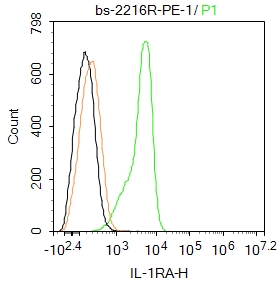 Primary Antibody (green line): Rabbit Anti-IL-1RA antibody (bs-2216R-PE)