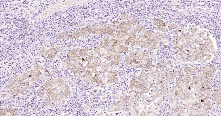 Immunohistochemical analysis of paraffin embedded human renal carcinoma tissue slide using IHC0249H (Human CK18 IHC Kit).