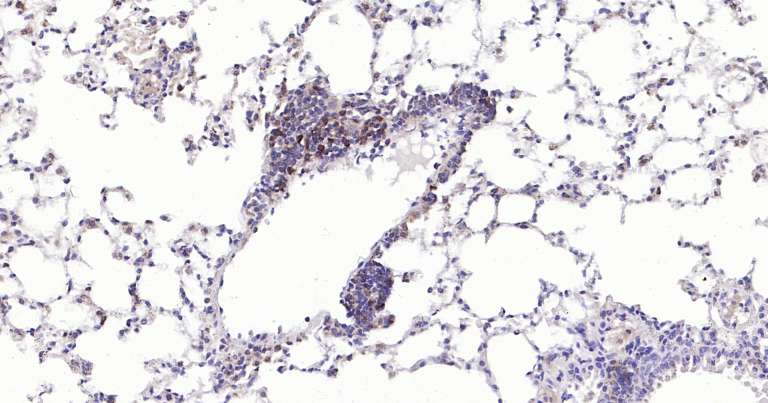 Immunohistochemical analysis of paraffin embedded mouse lung tissue slide using IHC0268 (Caspase-3 IHC Kit).