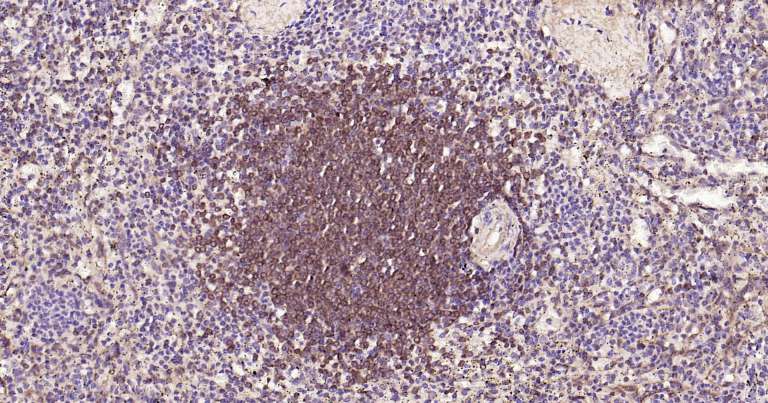 Immunohistochemical analysis of paraffin embedded mouse spleen tissue slide using IHC0280 (Bcl-2 IHC Kit).