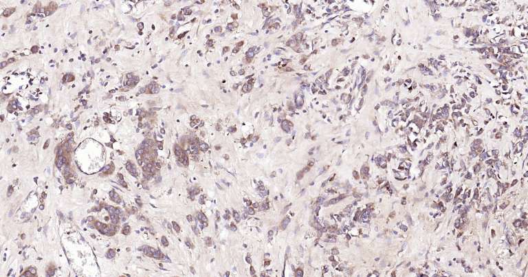 Immunohistochemical analysis of paraffin embedded human breast cancer tissue slide using IHC0281 (Bax IHC Kit).