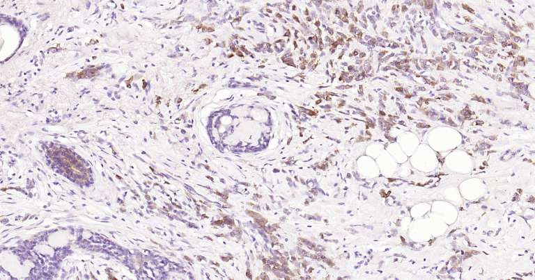 Immunohistochemical analysis of paraffin embedded human breast cancer tissue slide using IHC0175H (Human Tau-4 IHC Kit).