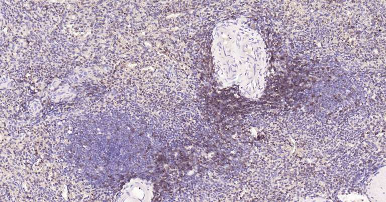 Immunohistochemical analysis of paraffin embedded human spleen tissue slide using IHC0300H (Human CD3D IHC Kit).