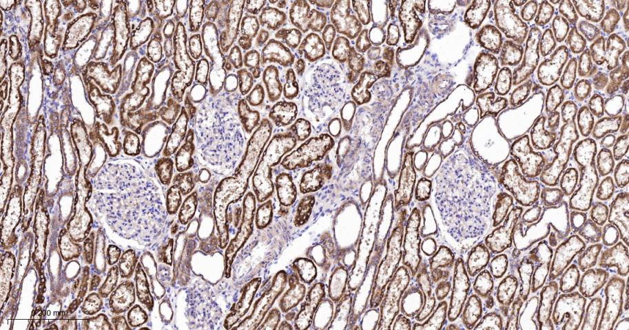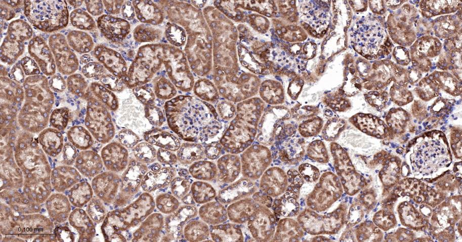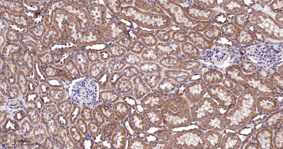 Paraformaldehyde-fixed, paraffin embedded Rat Kidney; Antigen retrieval by boiling in sodium citrate buffer (pH6.0) for 15 min; The section was incubated with BAD Monoclonal Antibody, Unconjugated (bsm-63058R) at 1:200 overnight at 4°C, followed by conjugation to the bs-0295G-HRP and DAB (C-0010) staining.