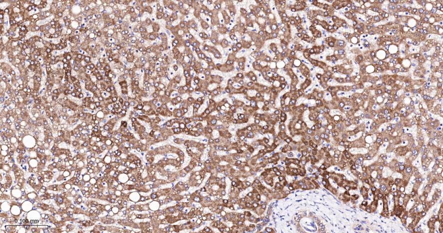 Paraformaldehyde-fixed, paraffin embedded Rat Liver; Antigen retrieval by boiling in sodium citrate buffer (pH6.0) for 15 min; The section was incubated with BAD Monoclonal Antibody, Unconjugated (bsm-63058R) at 1:200 overnight at 4°C, followed by conjugation to the bs-0295G-HRP and DAB (C-0010) staining.