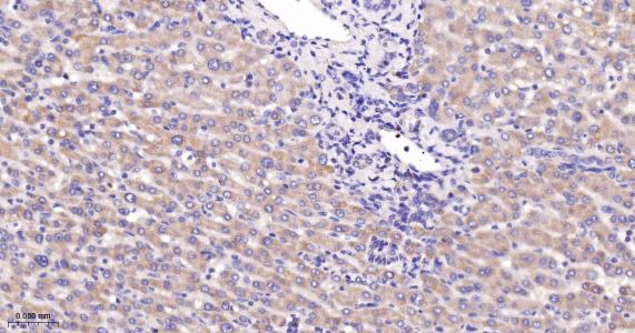 Paraformaldehyde-fixed, paraffin embedded Mouse Liver; Antigen retrieval by boiling in sodium citrate buffer (pH6.0) for 15 min; Antibody incubation with TRAP1/HSP75 Monoclonal Antibody, Unconjugated(bsm-62998R) at 1:200 overnight at 4°C, followed by conjugation to the bs-0295G-HRP and DAB (C-0010) staining.