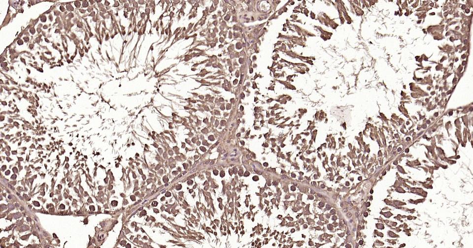 Paraformaldehyde-fixed, paraffin embedded Rat Testicles; Antigen retrieval by boiling in sodium citrate buffer (pH6.0) for 15 min; Antibody incubation with Ubiquitin Monoclonal Antibody, Unconjugated(bsm-63008R) at 1:200 overnight at 4°C, followed by conjugation to the bs-0295G-HRP and DAB (C-0010) staining and DAB (C-0010) staining.