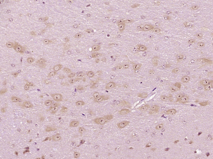 Paraformaldehyde-fixed, paraffin embedded (Mouse brain); Antigen retrieval by boiling in sodium citrate buffer (pH6.0) for 15min; Block endogenous peroxidase by 3% hydrogen peroxide for 20 minutes; Blocking buffer (normal goat serum) at 37°C for 30min; Antibody incubation with (CXorf36) Polyclonal Antibody, Unconjugated (bs-0727R) at 1:400 overnight at 4°C, followed by operating according to SP Kit(Rabbit) (sp-0023) instructionsand DAB staining.