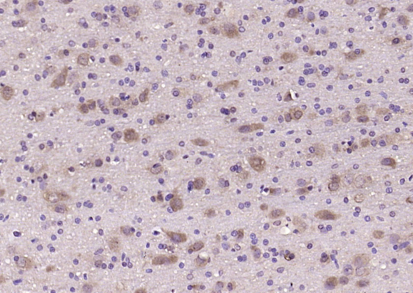 Paraformaldehyde-fixed, paraffin embedded (rat brain); Antigen retrieval by boiling in sodium citrate buffer (pH6.0) for 15min; Block endogenous peroxidase by 3% hydrogen peroxide for 20 minutes; Blocking buffer (normal goat serum) at 37°C for 30min; Antibody incubation with (Rab11) Polyclonal Antibody, Unconjugated (bs-6173R) at 1:200 overnight at 4°C, followed by operating according to SP Kit(Rabbit) (sp-0023) instructionsand DAB staining.