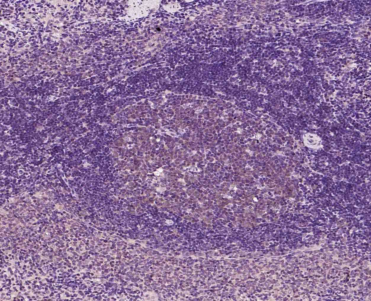 Paraformaldehyde-fixed, paraffin embedded (rat spleen); Antigen retrieval by boiling in sodium citrate buffer (pH6.0) for 15min; Block endogenous peroxidase by 3% hydrogen peroxide for 20 minutes; Blocking buffer (normal goat serum) at 37°C for 30min; Incubation with (PIBF1) Polyclonal Antibody, Unconjugated (bs-9612R) at 1:200 overnight at 4°C, followed by operating according to SP Kit(Rabbit) (sp-0023) instructionsand DAB staining.