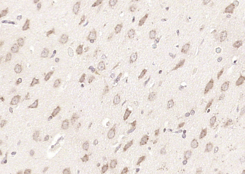 Paraformaldehyde-fixed, paraffin embedded (rat brain); Antigen retrieval by boiling in sodium citrate buffer (pH6.0) for 15min; Block endogenous peroxidase by 3% hydrogen peroxide for 20 minutes; Blocking buffer (normal goat serum) at 37°C for 30min; Antibody incubation with (NELL2) Polyclonal Antibody, Unconjugated (bs-11895R) at 1:200 overnight at 4°C, followed by operating according to SP Kit(Rabbit) (sp-0023) instructionsand DAB staining.