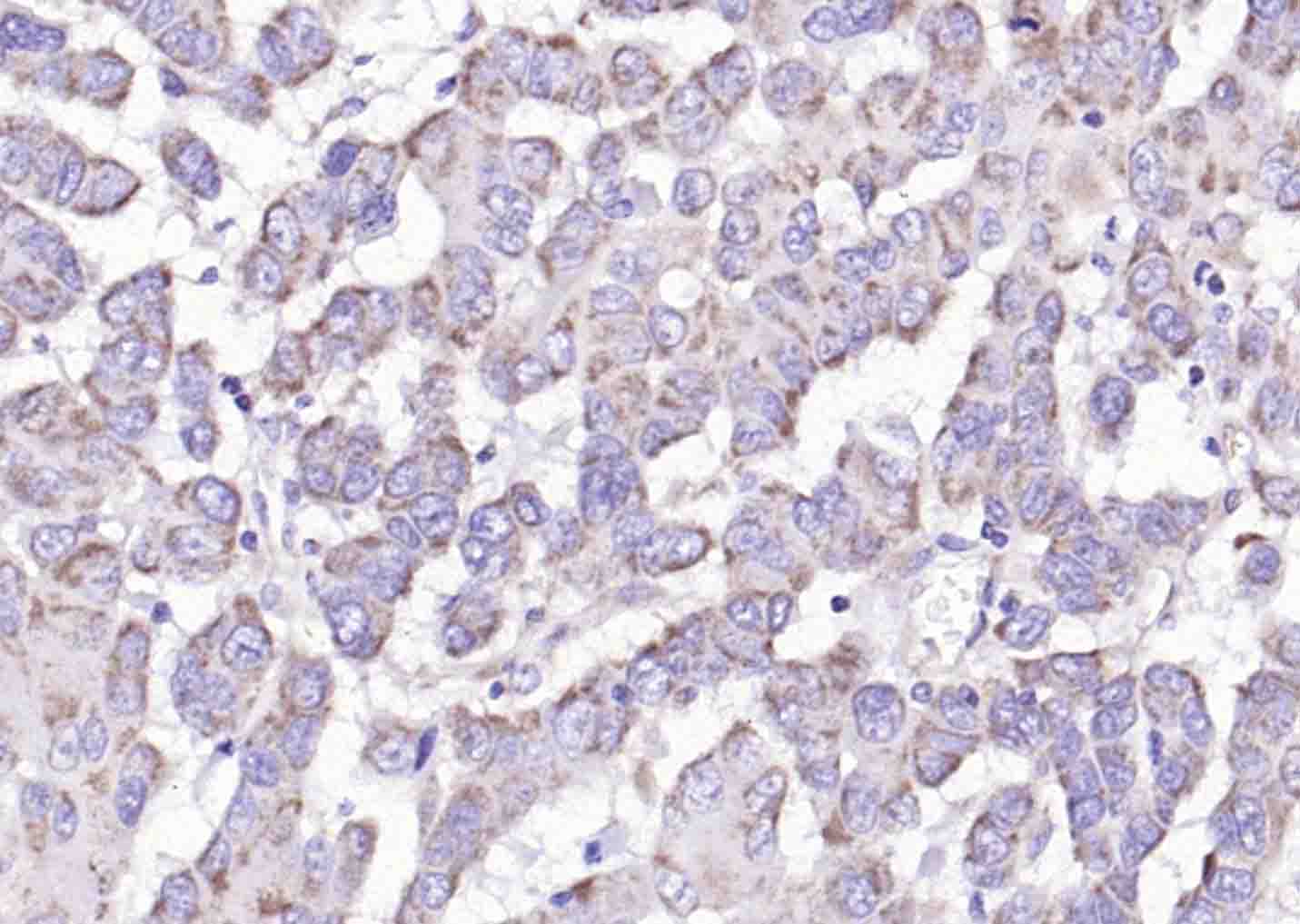 Paraformaldehyde-fixed, paraffin embedded (human liver carcinoma); Antigen retrieval by boiling in sodium citrate buffer (pH6.0) for 15min; Block endogenous peroxidase by 3% hydrogen peroxide for 20 minutes; Blocking buffer (normal goat serum) at 37°C for 30min; Antibody incubation with (C6orf145 ) Polyclonal Antibody, Unconjugated (bs-15222R) at 1:200 overnight at 4°C, followed by operating according to SP Kit(Rabbit) (sp-0023) instructionsand DAB staining.