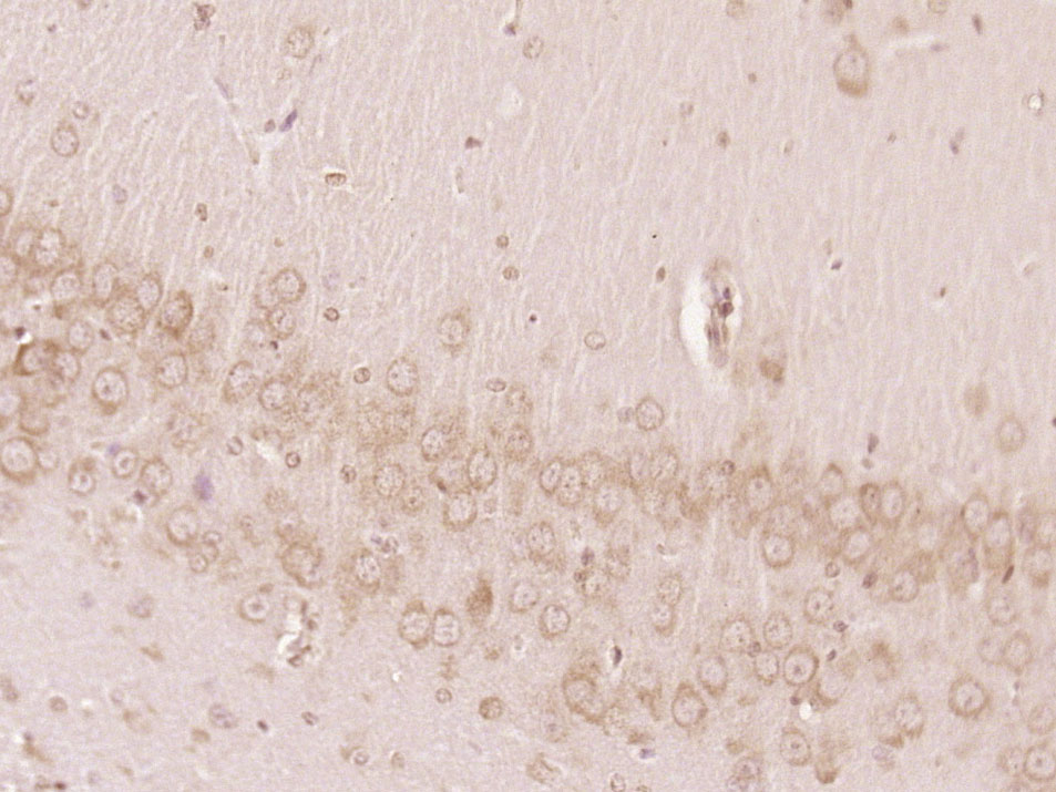 Paraformaldehyde-fixed, paraffin embedded (Rat brain); Antigen retrieval by boiling in sodium citrate buffer (pH6.0) for 15min; Block endogenous peroxidase by 3% hydrogen peroxide for 20 minutes; Blocking buffer (normal goat serum) at 37°C for 30min; Antibody incubation with (MTMR7) Polyclonal Antibody, Unconjugated (bs-17888R) at 1:500 overnight at 4°C, followed by a conjugated secondary (sp-0023) for 20 minutes and DAB staining.