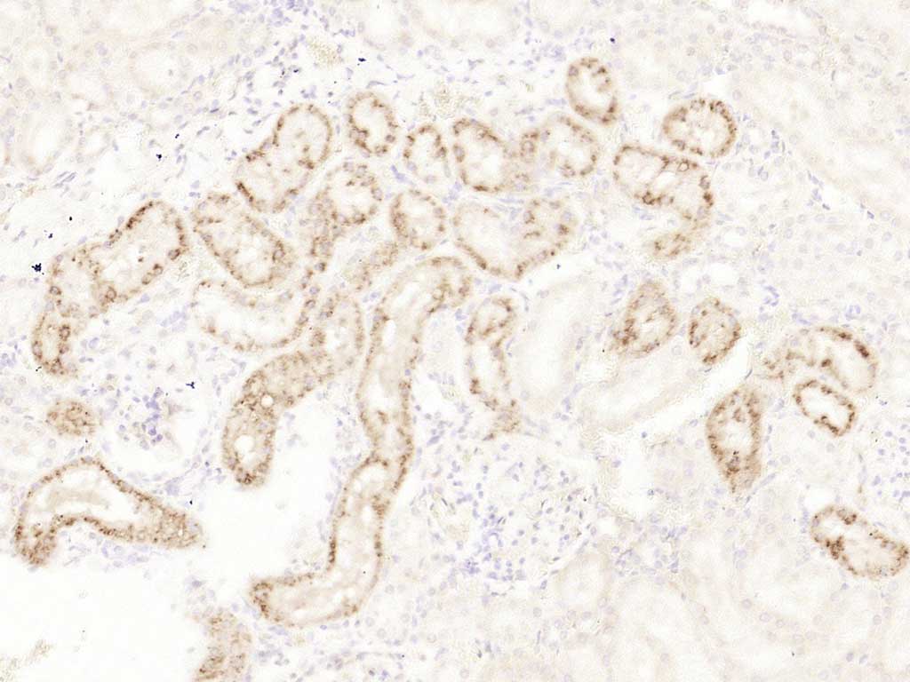 Paraformaldehyde-fixed, paraffin embedded (rat kidney); Antigen retrieval by boiling in sodium citrate buffer (pH6.0) for 15min; Block endogenous peroxidase by 3% hydrogen peroxide for 20 minutes; Blocking buffer (normal goat serum) at 37°C for 30min; Antibody incubation with (LPHN1) Polyclonal Antibody, Unconjugated (bs-18348R) at 1:200 overnight at 4°C, followed by operating according to SP Kit(Rabbit) (sp-0023) instructionsand DAB staining.