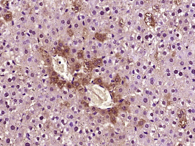 Paraformaldehyde-fixed, paraffin embedded (rat liver tissue); Antigen retrieval by boiling in sodium citrate buffer (pH6.0) for 15min; Block endogenous peroxidase by 3% hydrogen peroxide for 20 minutes; Blocking buffer (normal goat serum) at 37°C for 30min; Antibody incubation with (NDUFB5) Polyclonal Antibody, Unconjugated (bs-19084R) at 1:400 overnight at 4°C, followed by operating according to SP Kit(Rabbit) (sp-0023) instructionsand DAB staining.