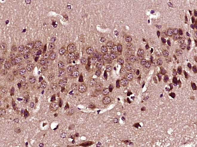 Paraformaldehyde-fixed, paraffin embedded (mouse brain tissue); Antigen retrieval by boiling in sodium citrate buffer (pH6.0) for 15min; Block endogenous peroxidase by 3% hydrogen peroxide for 20 minutes; Blocking buffer (normal goat serum) at 37°C for 30min; Antibody incubation with (NDUFB5) Polyclonal Antibody, Unconjugated (bs-19084R) at 1:400 overnight at 4°C, followed by operating according to SP Kit(Rabbit) (sp-0023) instructionsand DAB staining.