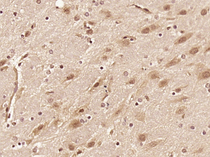 Paraformaldehyde-fixed, paraffin embedded (Rat brain); Antigen retrieval by boiling in sodium citrate buffer (pH6.0) for 15min; Block endogenous peroxidase by 3% hydrogen peroxide for 20 minutes; Blocking buffer (normal goat serum) at 37°C for 30min; Antibody incubation with (RAD26L) Polyclonal Antibody, Unconjugated (bs-19724R) at 1:400 overnight at 4°C, followed by operating according to SP Kit(Rabbit) (sp-0023) instructionsand DAB staining.