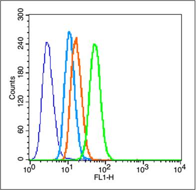 Secondary Antibody (white blue line): Goat anti-rabbit IgG-FITC, Dilution: 1μg /test.