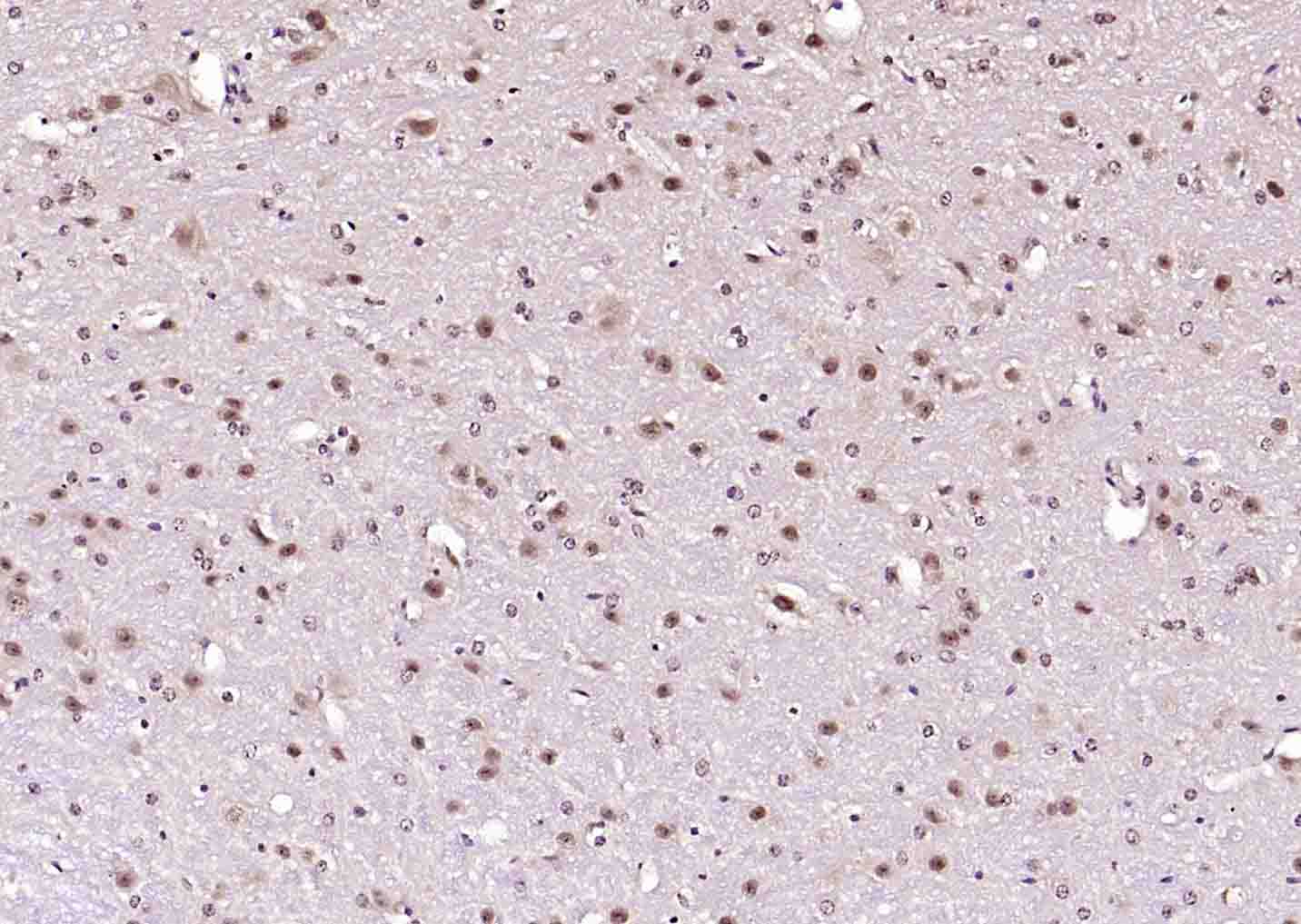 Paraformaldehyde-fixed, paraffin embedded (mouse cerebellum); Antigen retrieval by boiling in sodium citrate buffer (pH6.0) for 15min; Block endogenous peroxidase by 3% hydrogen peroxide for 20 minutes; Blocking buffer (normal goat serum) at 37°C for 30min; Incubation with (PURB) Polyclonal Antibody, Unconjugated (bs-4435R) at 1:200 overnight at 4°C, followed by operating according to SP Kit(Rabbit) (sp-0023) instructionsand DAB staining.