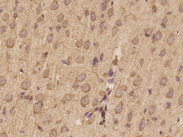 Paraformaldehyde-fixed, paraffin embedded (rat brain tissue); Antigen retrieval by boiling in sodium citrate buffer (pH6.0) for 15min; Block endogenous peroxidase by 3% hydrogen peroxide for 20 minutes; Blocking buffer (normal goat serum) at 37°C for 30min; Antibody incubation with (IQSEC3) Polyclonal Antibody, Unconjugated (bs-20333R) at 1:400 overnight at 4°C, followed by operating according to SP Kit(Rabbit) (sp-0023) instructionsand DAB staining.