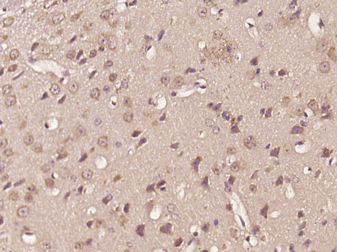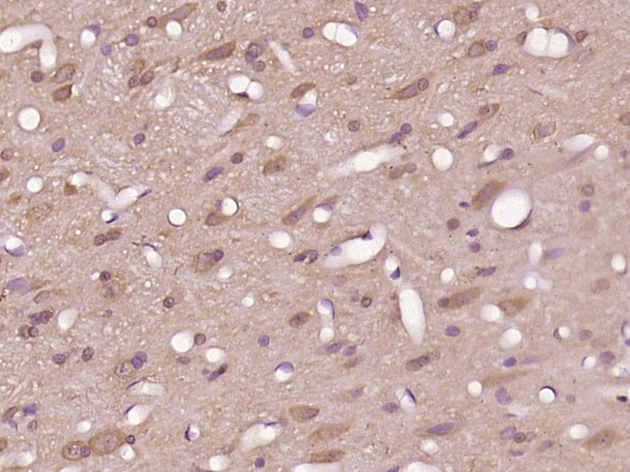 Paraformaldehyde-fixed, paraffin embedded (mouse brain tissue); Antigen retrieval by boiling in sodium citrate buffer (pH6.0) for 15min; Block endogenous peroxidase by 3% hydrogen peroxide for 20 minutes; Blocking buffer (normal goat serum) at 37°C for 30min; Antibody incubation with (Oligophrenin 1) Polyclonal Antibody, Unconjugated (bs-20427R) at 1:400 overnight at 4°C, followed by operating according to SP Kit(Rabbit) (sp-0023) instructionsand DAB staining.