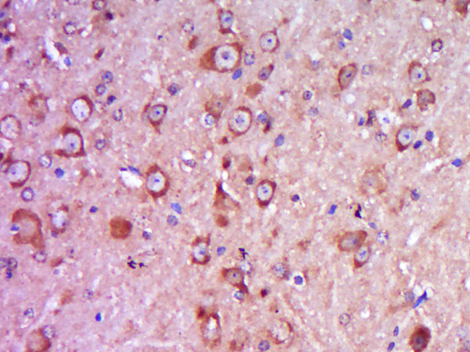 Paraformaldehyde-fixed, paraffin embedded (Mouse brain); Antigen retrieval by boiling in sodium citrate buffer (pH6.0) for 15min; Block endogenous peroxidase by 3% hydrogen peroxide for 20 minutes; Blocking buffer (normal goat serum) at 37°C for 30min; Antibody incubation with (Intersectin 2) Polyclonal Antibody, Unconjugated (bs-23114R) at 1:400 overnight at 4°C, followed by operating according to SP Kit(Rabbit) (sp-0023) instructionsand DAB staining.
