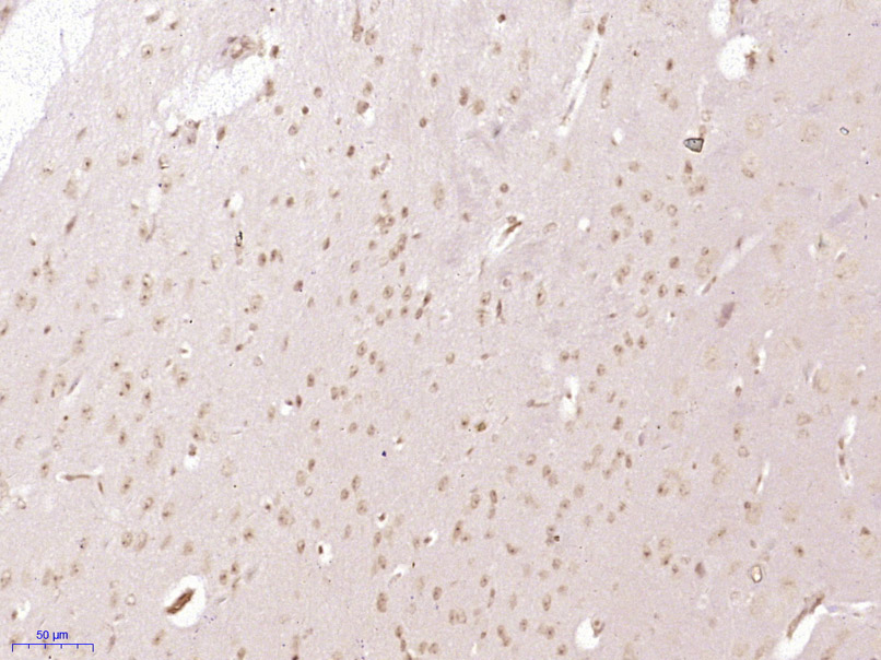 Paraformaldehyde-fixed, paraffin embedded (Mouse brain); Antigen retrieval by boiling in sodium citrate buffer (pH6.0) for 15min; Block endogenous peroxidase by 3% hydrogen peroxide for 20 minutes; Blocking buffer (normal goat serum) at 37°C for 30min; Antibody incubation with (RRP15) Polyclonal Antibody, Unconjugated (bs-24119R) at 1:400 overnight at 4°C, followed by operating according to SP Kit(Rabbit) (sp-0023) instructionsand DAB staining.