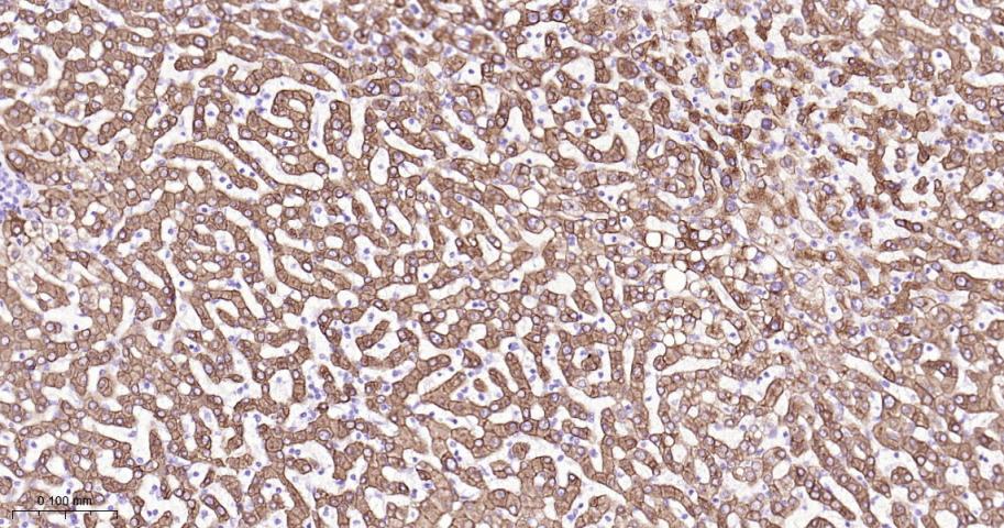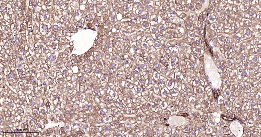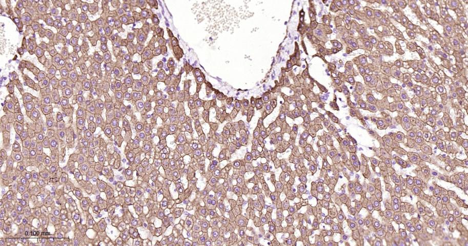 Paraformaldehyde-fixed, paraffin embedded Rat liver; Antigen retrieval by boiling in sodium citrate buffer (pH6.0) for 15 min; Antibody incubation with CK18  Monoclonal Antibody, Unconjugated(bsm-52058R) at 1:200 overnight at 4°C, followed by conjugation